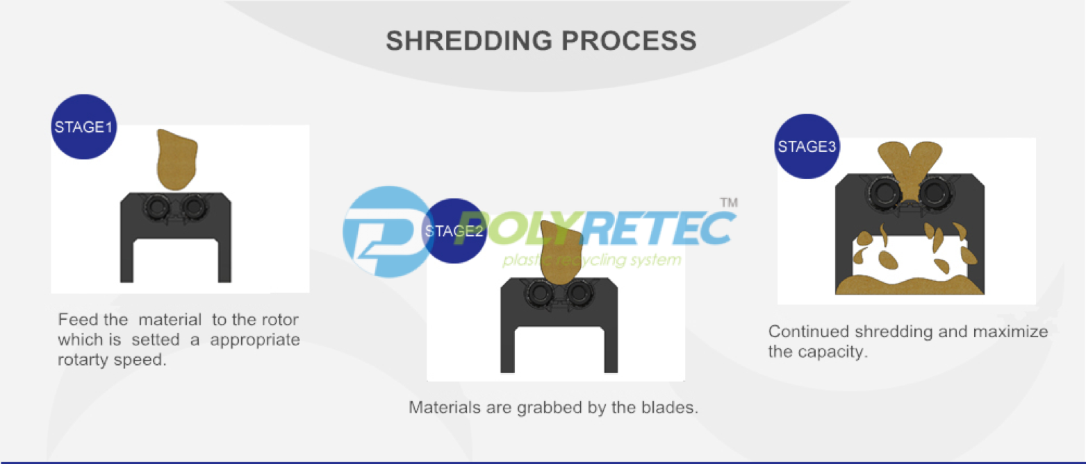 SWTF series film shredders adopt double film shafts design that rotate a medium speed, low noise and high efficient without pusher. Adopt SIENMENS LOGO microcomputer control system with function of start, stop, automatic reverse sensors to protect the machine against over loading and jamming. It is especially suitable for recycling the medium hardness and soft material, for example film, woven bag, jumbo bag, paper and ect. Aiming at different material, it could use different shaft.